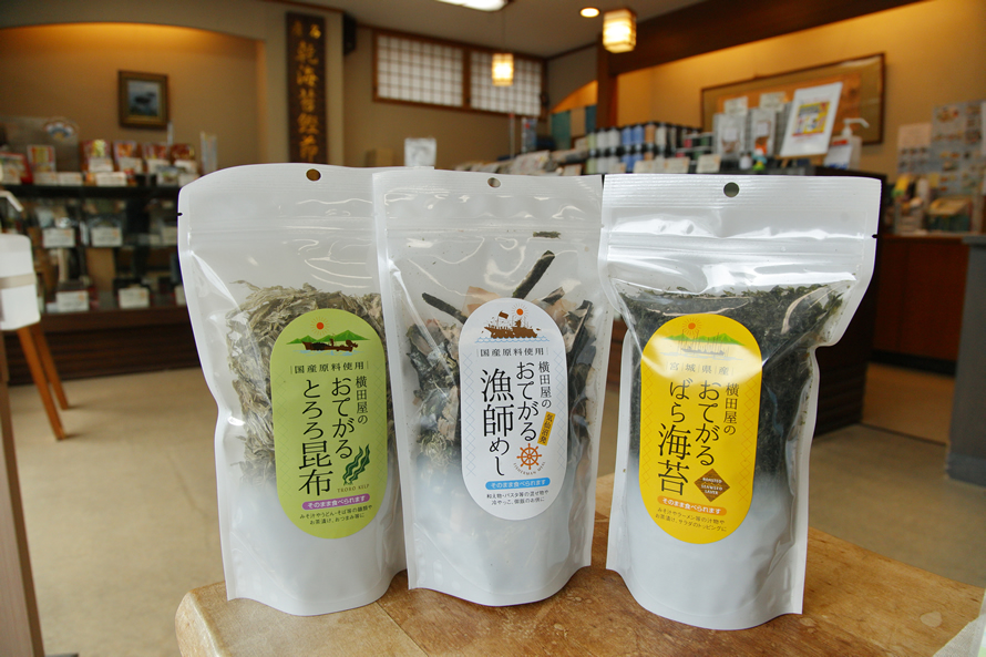 「近年、ほかの地域と同様、気仙沼や三陸でもとれる魚介や海藻が変わってきています。その中で変えるところ、変えないところを見極めています」と商品づくりの姿勢を語る猪狩さん。横田屋本店の商品は、どれも昔ながらの手法や味わいを大切にしています。「奇をてらったものではなく、素材が引き立つようなシンプルな味付けにしている商品が多いですね。その時々のブームに左右されない、息の長い商品づくりを続けてきたことが、多くのお客様からご支持いただけている理由かもしれません」。