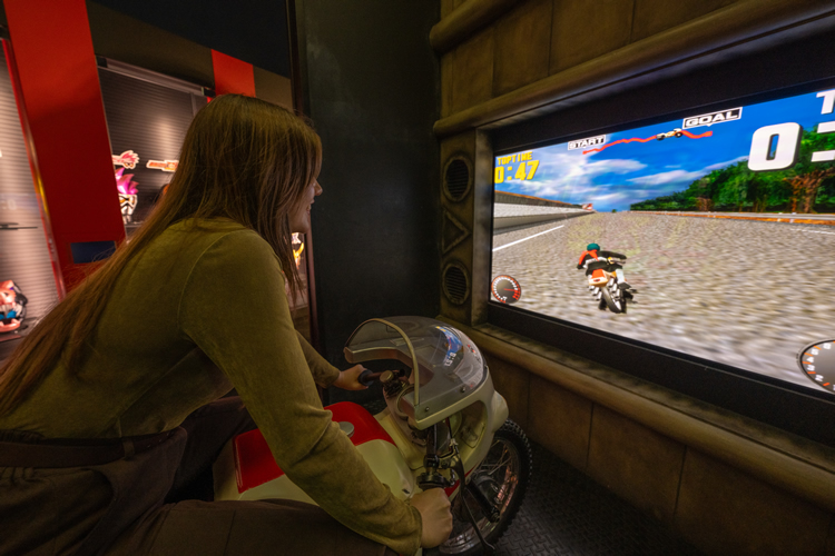 そこから緩やかな曲線に沿って進むと、石ノ森章太郎の長い創作活動を彩る、魅力あふれる展示の数々に出会えます。時代とともに進化してきた『仮面ライダー』の世界を振り返り、展示されたホテルのフロントベルを鳴らしたり、人気作品『人造人間キカイダー』の誕生の瞬間を再現した展示を見学したりと、作品の世界観を体感しながら楽しむことができます。