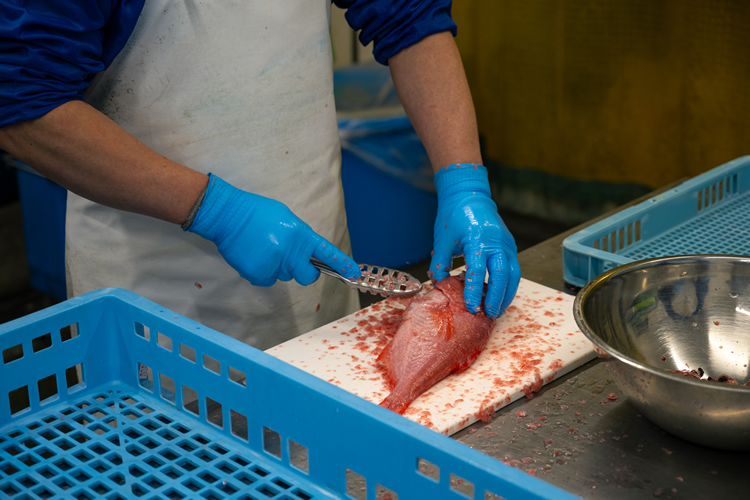 サラヤ保崎商店が取り扱う魚の中で、主役となるのはやはりキンメダイです。柔らかく濃厚、それでいて自然な甘みが特徴で、栄養豊かな勝浦の海で水揚げされるキンメダイは、この地域の海産物の上質さを象徴しています。また、同社は伝統を守るだけでなく、新しい商品づくりにも挑戦しています。カツオやマカジキを使ったアヒージョや、ハワイでは高級魚として扱われ、現在では千葉県内の学校給食にも登場しているマヒマヒ(シイラ)の揚げ物などを提供しています。こうした商品には、魚を余すことなく活用し、大胆なアイデアで新しい形に挑戦しながら、伝統の味わいを次の世代へ伝えていこうとする、サラヤ保崎商店の理念が表れています。