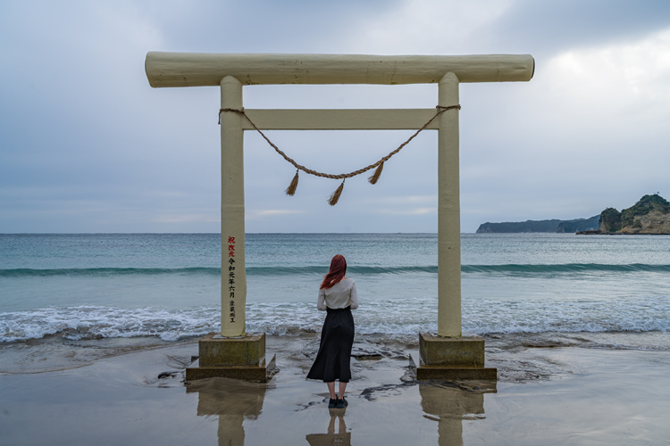 そびえ立つ断崖と、水際に立つ印象的な白い鳥居で知られる鵜原海岸は、房総半島でも特に風光明媚な写真映えするスポットのひとつです。穏やかな海岸と大きく開けた水平線が広がり、海沿いの散策や静かなひとときを過ごすのにもぴったり。荒々しい岩肌とやさしく打ち寄せる波のコントラストが、まるで絵はがきのような美しい景観を生み出しています。