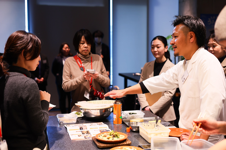 三陸・常磐の海の幸“UMIUMAグルメ”を全国の飲食店で楽しめる「三陸・常磐うみうまフェア」が、2月からスタートします。これに先立ち、フェア参加飲食店の担当者やシェフ、水産加工品の生産者が集まり、メディア向け試食会を開催。各店と生産者がコラボレーションして生み出した特別メニューを、実演や試食を交えながら紹介しました。