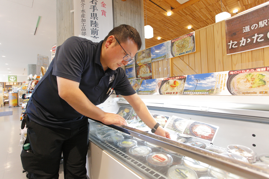 この道の駅で、地域の特産品や水産加工物などを販売している「たかたや一本松店」を営業しているのが陸前高田地域振興株式会社です。今回は代表取締役の佐藤忠広さんと、営業部係長の佐藤貴洋さんにお話を伺いました。