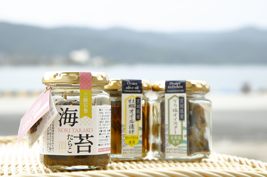 また、以前には石巻の大学と連携し、学生の商品開発も後押し。東松島産の海苔を使った商品の開発に協力するなど、若者が地域の魅力にふれ、自らのアイデアや想いを事業に発展させる貴重な機会を創出しました。「水産業の高齢化や人手不足は、万石浦でも大きな課題になっています。若い人たちが水産業で食べていけるような取り組みが大切だと思います」と瀧口さん。最近では、石巻にあるたらこの加工会社とコラボレーションした商品を生み出すなど、精力的に活動を続けています。