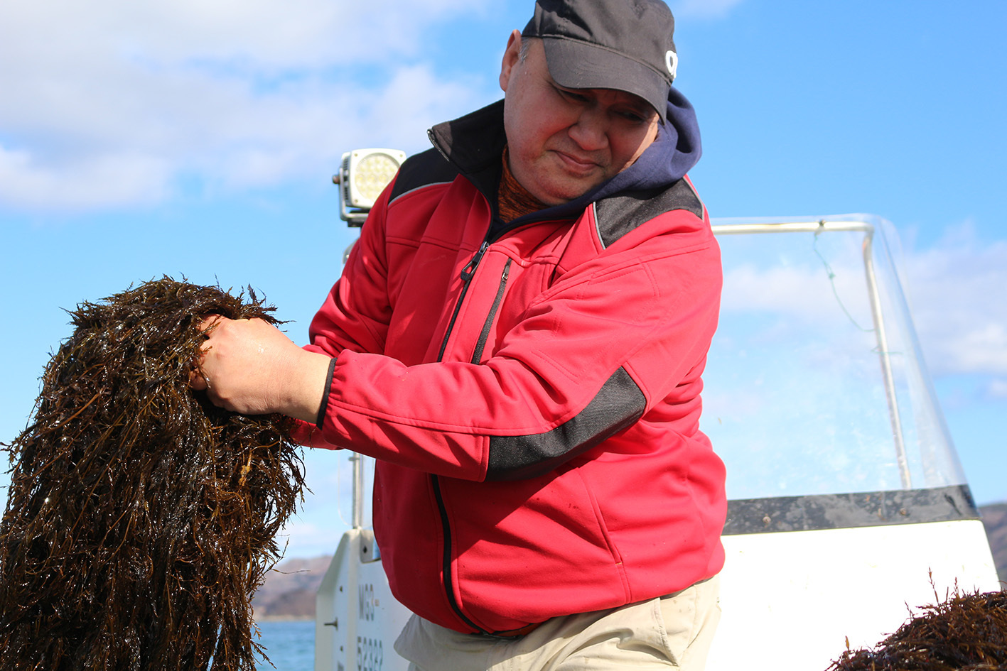 例えば、その一つが海藻の「あかもく」を原料にした商品です。古くから主に秋田などで食べられてきた素材ですが、近年では栄養豊富なスーパーフードとしても注目されており、瀧口商店では旬の時期に万石浦で収穫されたあかもくを松前漬けなどに商品化しています。「ネバネバ、シャキシャキとした食感が魅力のあかもくですが、特に万石浦のものは、他地域のものと比べて粘りが強いのが特徴ですね」。瀧口商店では、一般的に加工が難しいあかもくを、食べやすさや料理での使い勝手を考えて細切りにするなど、手間暇を掛けて工夫しています。