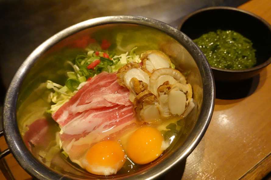 同店では以下のお好み焼き3種類、「青森ホタテのお好み焼」「青森ホタテとメカブのお好み焼」「三陸メカブと納豆のネバトロお好み焼」に加えて、「青森ホタテ醤油バター」「三陸牡蠣フライ」「常磐目光唐揚げ」を特別メニューとして提供しています。