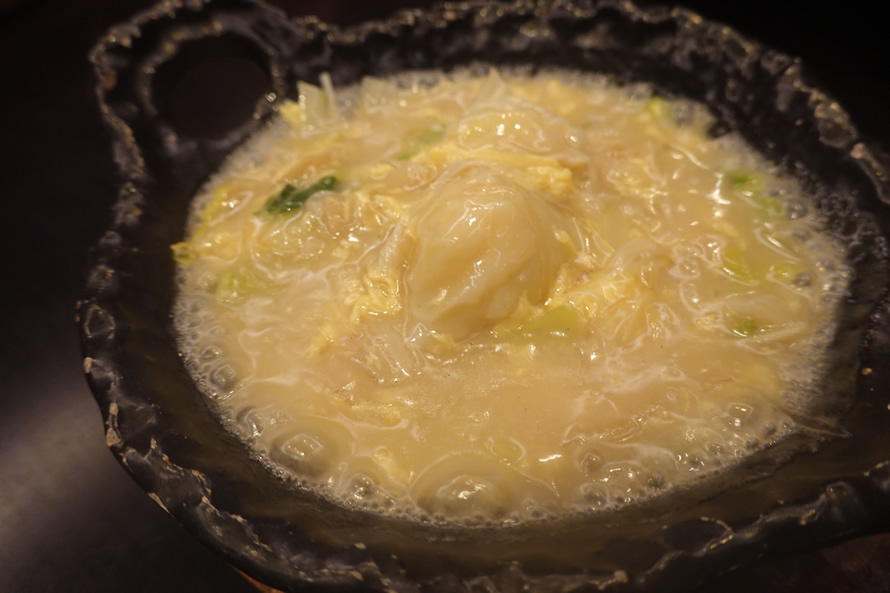 「気仙沼産フカヒレ福雲呑の餡掛けおこげ~濃厚白湯煮込み~」
