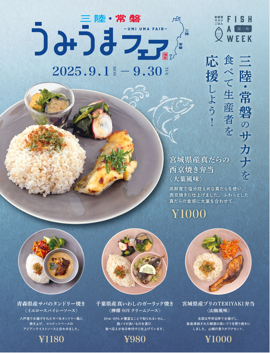 昨年に引き続き、「FISH A WEEK 四谷店」が三陸・常磐うみうまフェアとコラボレーション!9月1日から30日までの1カ月間、三陸・常磐の海の幸をふんだんに使った特別メニューを提供します。おいしい魚を食べて、生産者を応援しましょう!