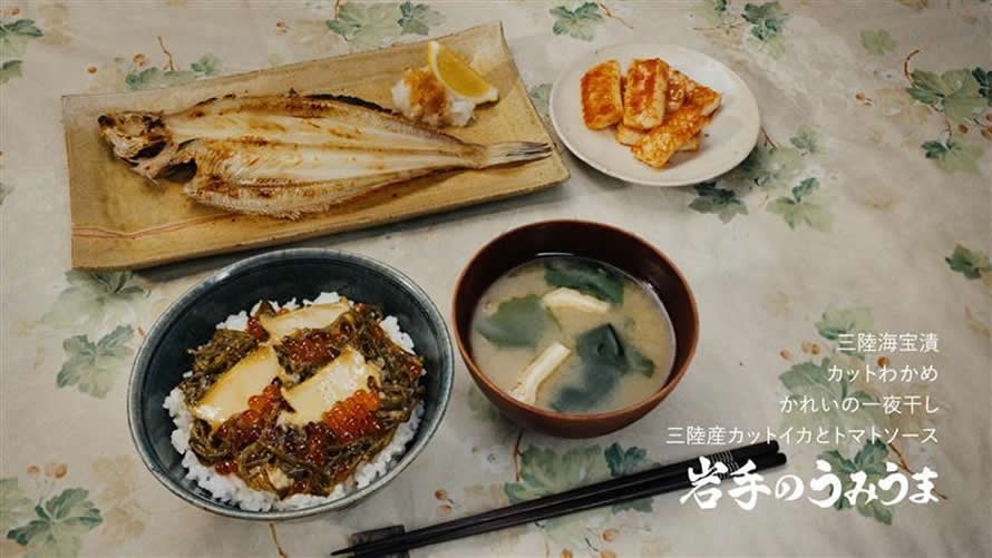 今回のTVCMは岩手県出身の俳優・戸塚純貴さん演じるうみうまキャプテンの自宅が舞台。岩手・宮城・福島の絶品の水産加工品が次々と登場します。