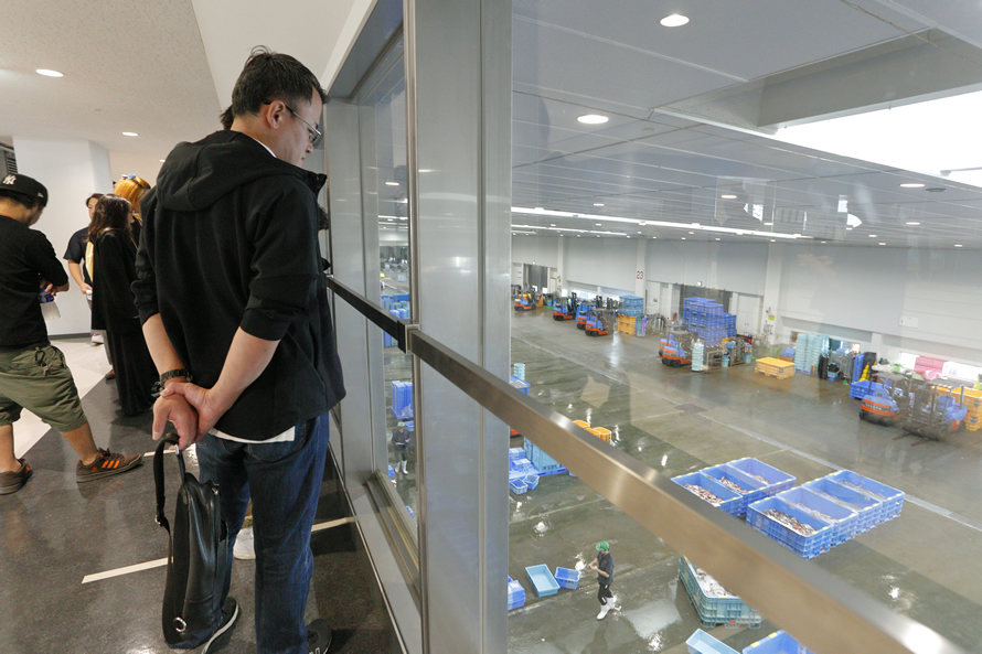 石巻ルートでは、魚市場の食堂で朝食を取った後、市場の仕組みやブランド魚「金華さば」についての説明を受けながら施設を見学。市場内に陳列される魚の迫力に、思わず「でかっ!」と声が漏れる場面も。