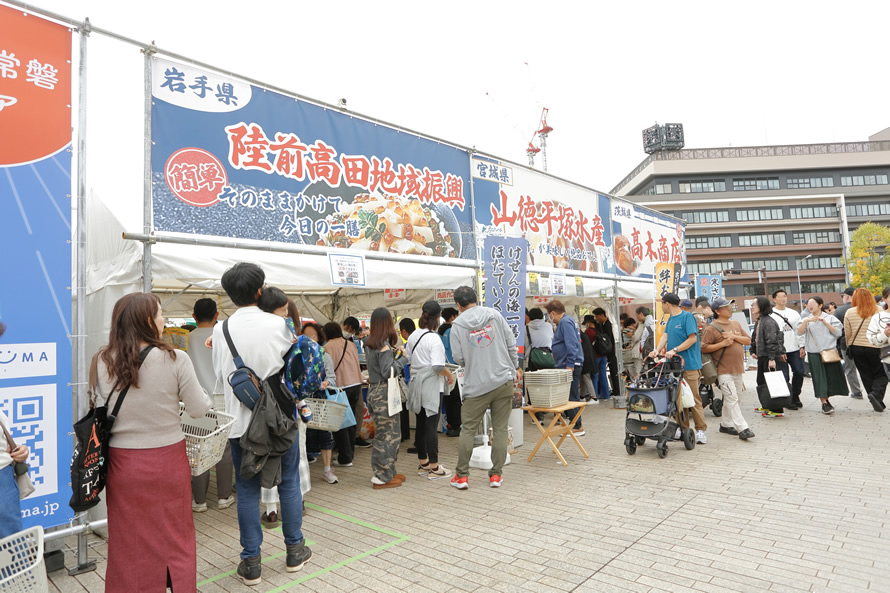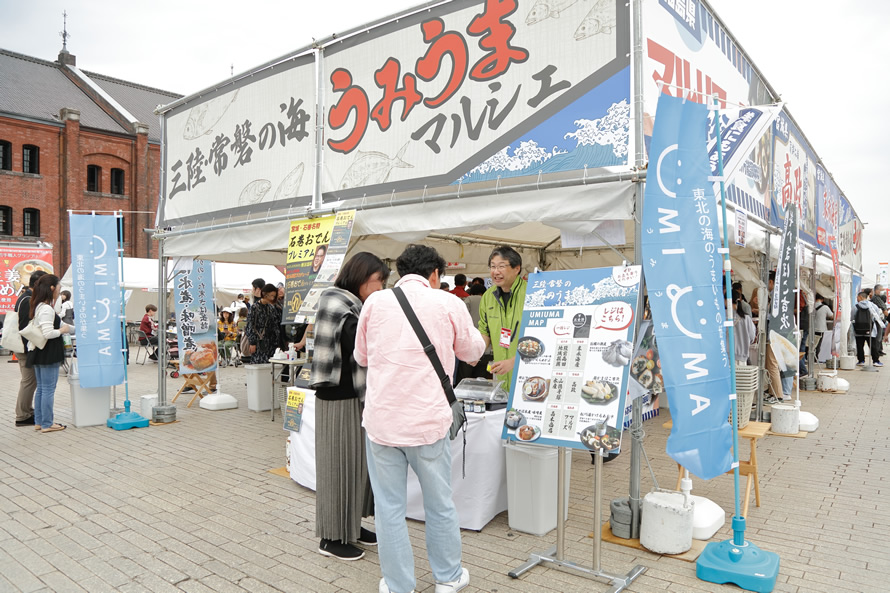 今年で19回目を迎えたフードイベント「全国ふるさとフェア2025」では、全国各地のグルメや特産品が一堂に集まり、地域の豊かな魅力を発信。例年10万人超の動員を誇る、横浜の秋の一大イベントとなっており、「三陸・常磐の海 うみうまマルシェ」は昨年に続いて出展しました。