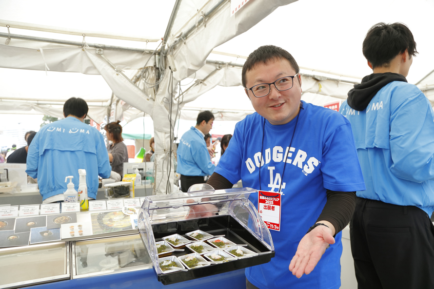 昨年に続き、今年も来場者の多い会場入り口付近にブースを構えた「三陸・常磐の海 うみうまマルシェ」。以下の6社が参加し、厳選した素材やこだわりの工程で作った水産加工品を販売。初出展となる企業も加わり、三陸・常磐の海の恵みを多彩に発信しました。