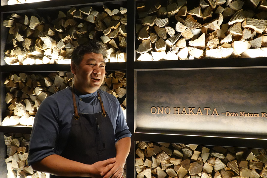 厳選した九州産の食材を薪火で調理し、フレンチをベースにした創作料理として提供する「ONO HAKATA -Octo Natura Kyusyu-」。